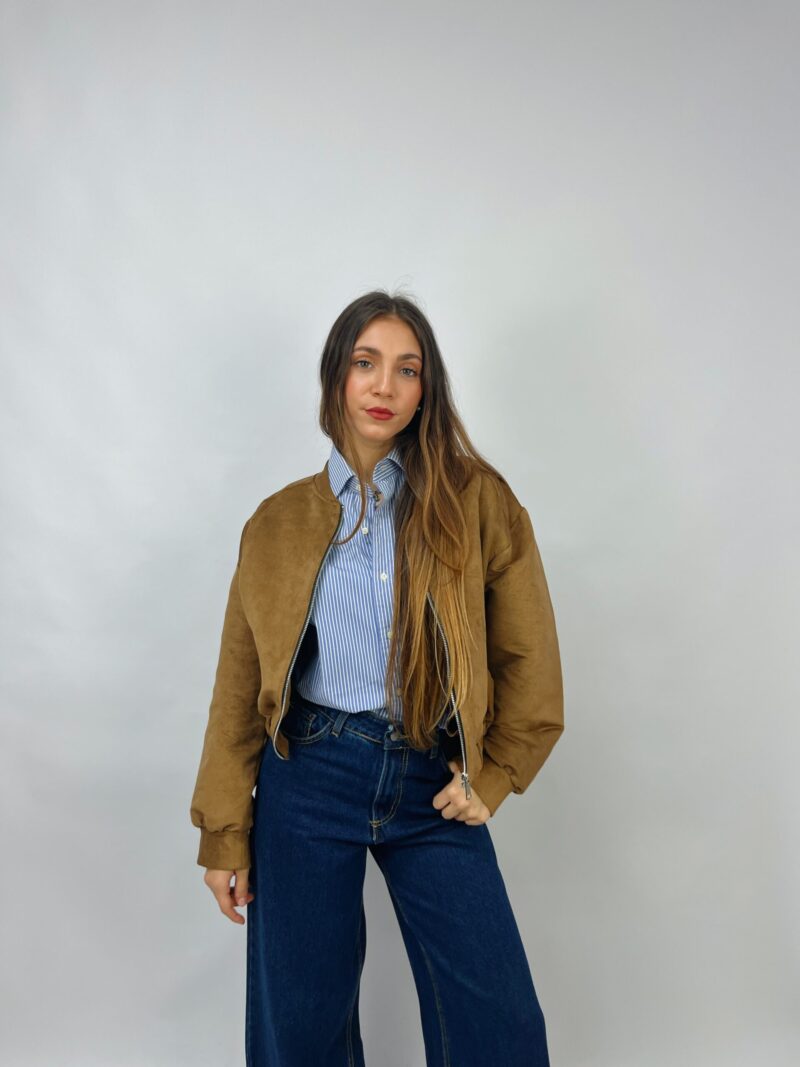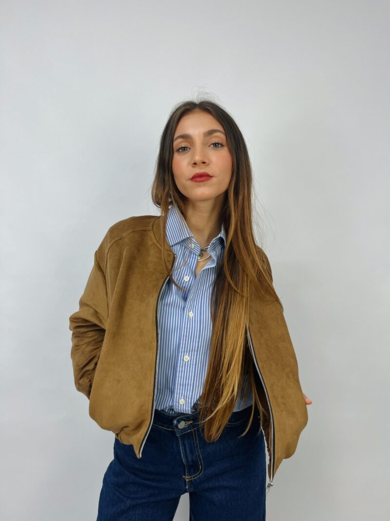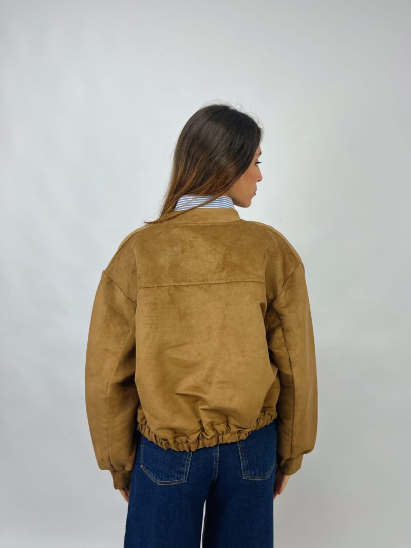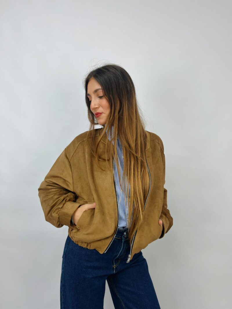 Giacca bomber in suede con zip e fondo elasticizzato.
