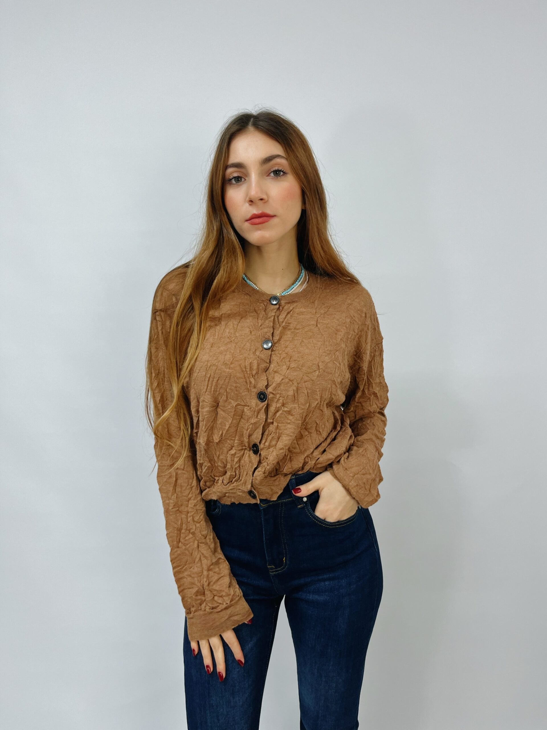 La taglia UNICA veste dalla XS alla L. La modella รจ una taglia S alta 165 cm ed indossa la taglia unica.