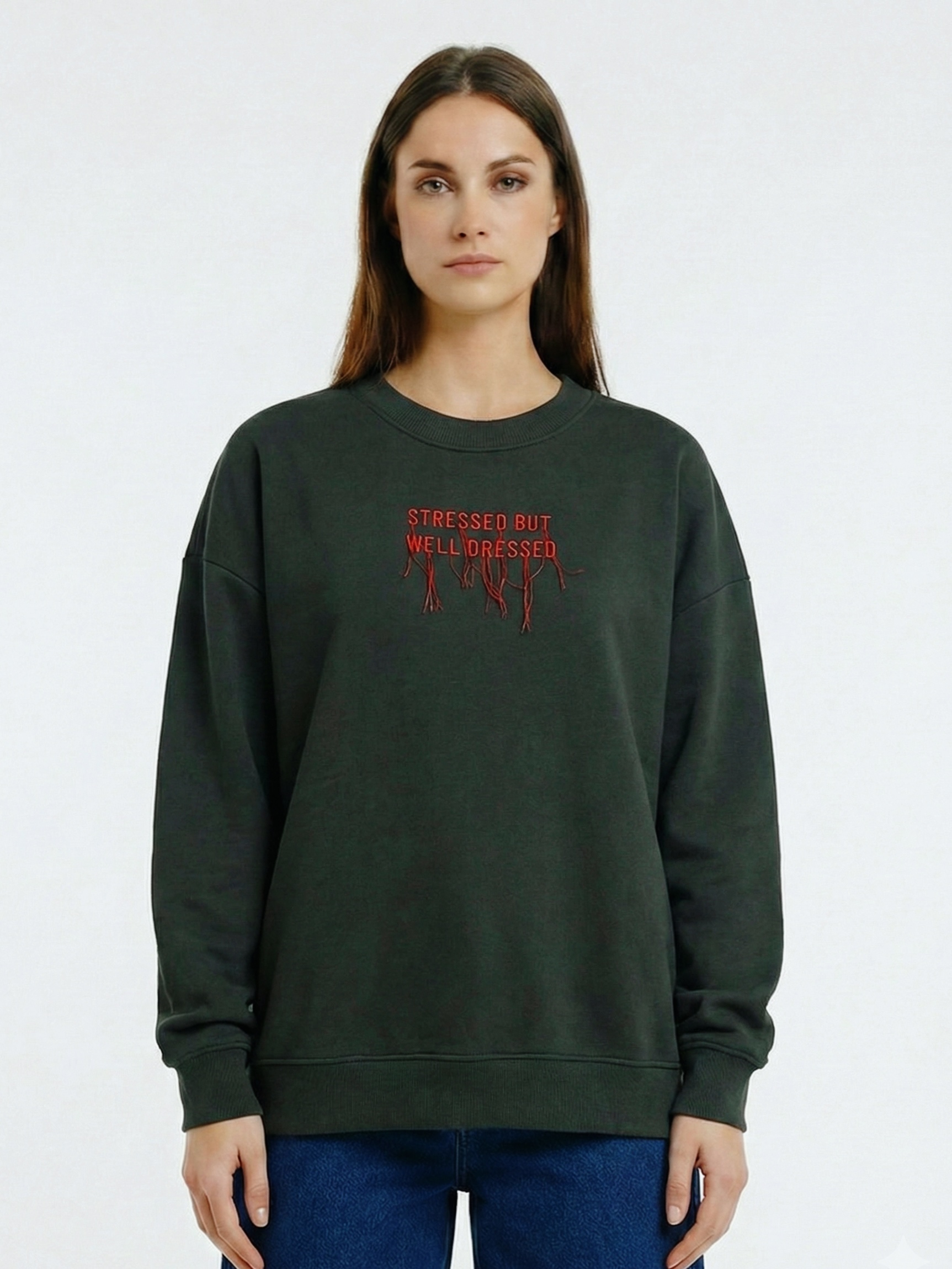 Le nostre felpe invernali in cotone con vestibilità rilassata e ricamo Stressed But Well Dressed