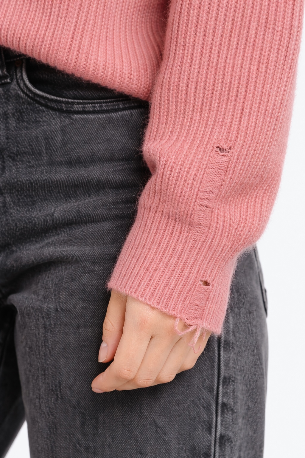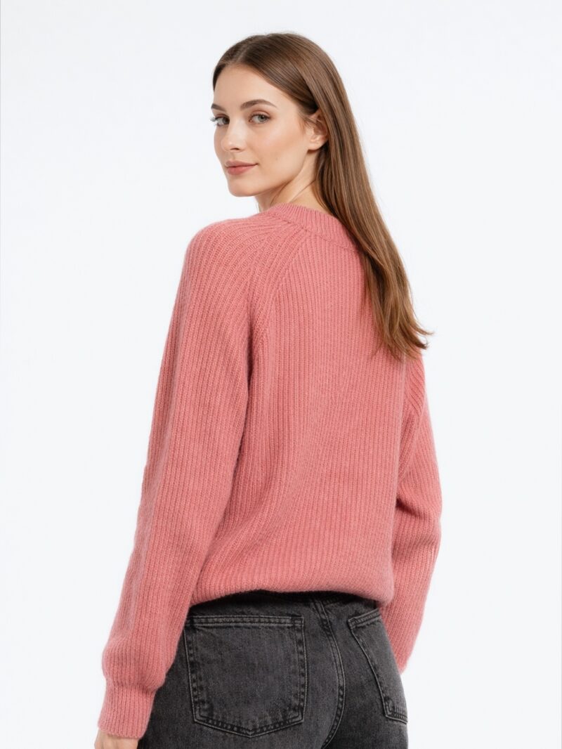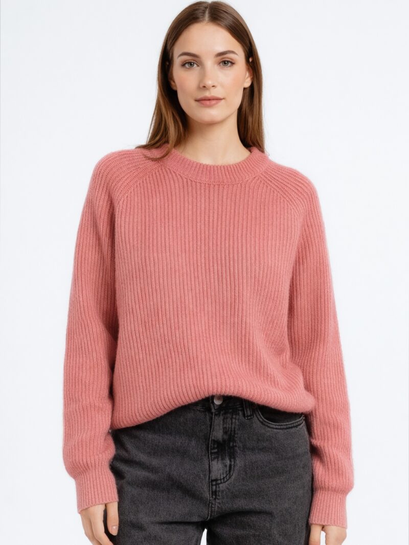 Vestibilità: morbida con fondo e polsi elasticizzati. Trama a coste e dettaglio rotture su fondo e polsi.