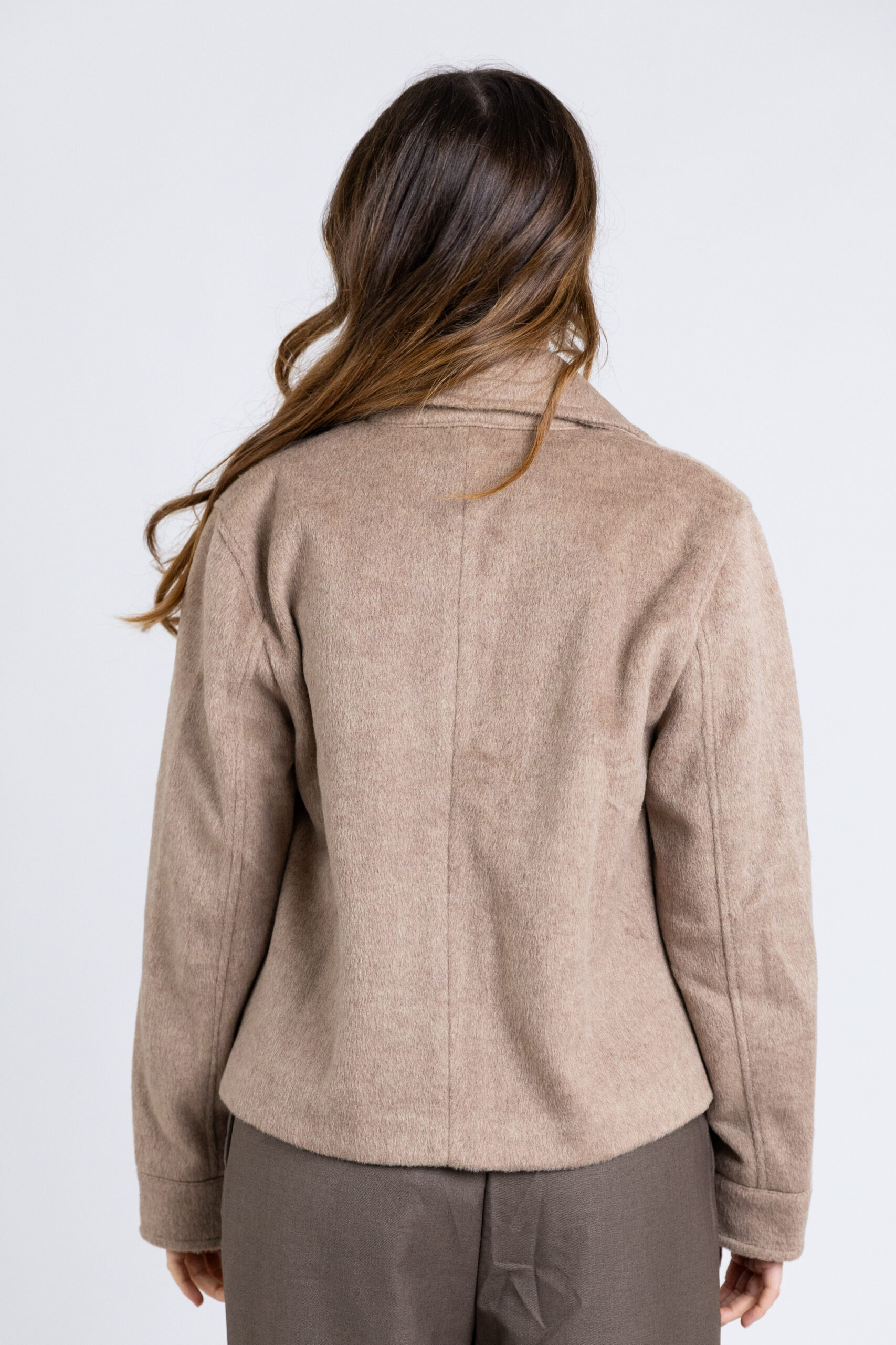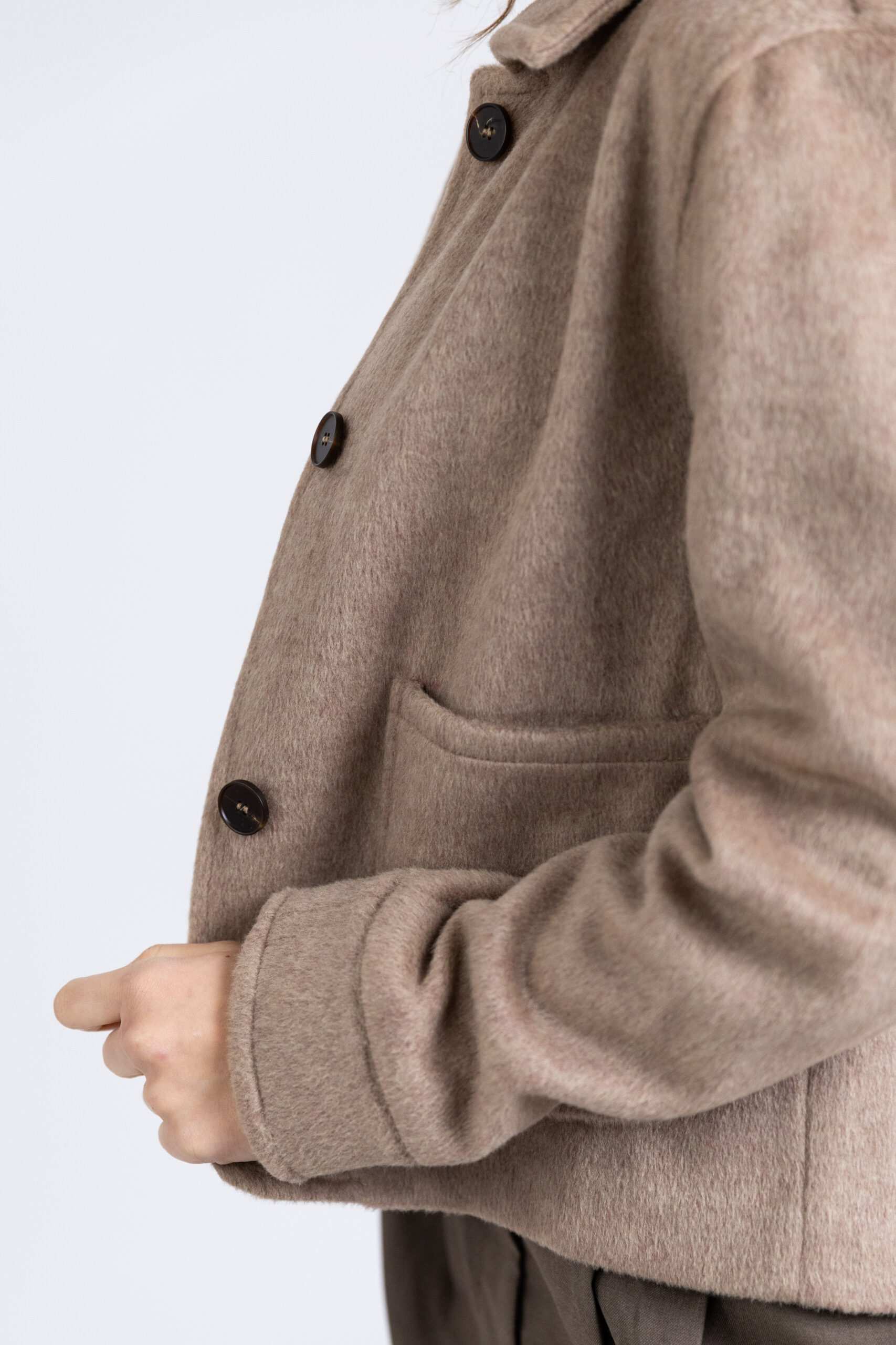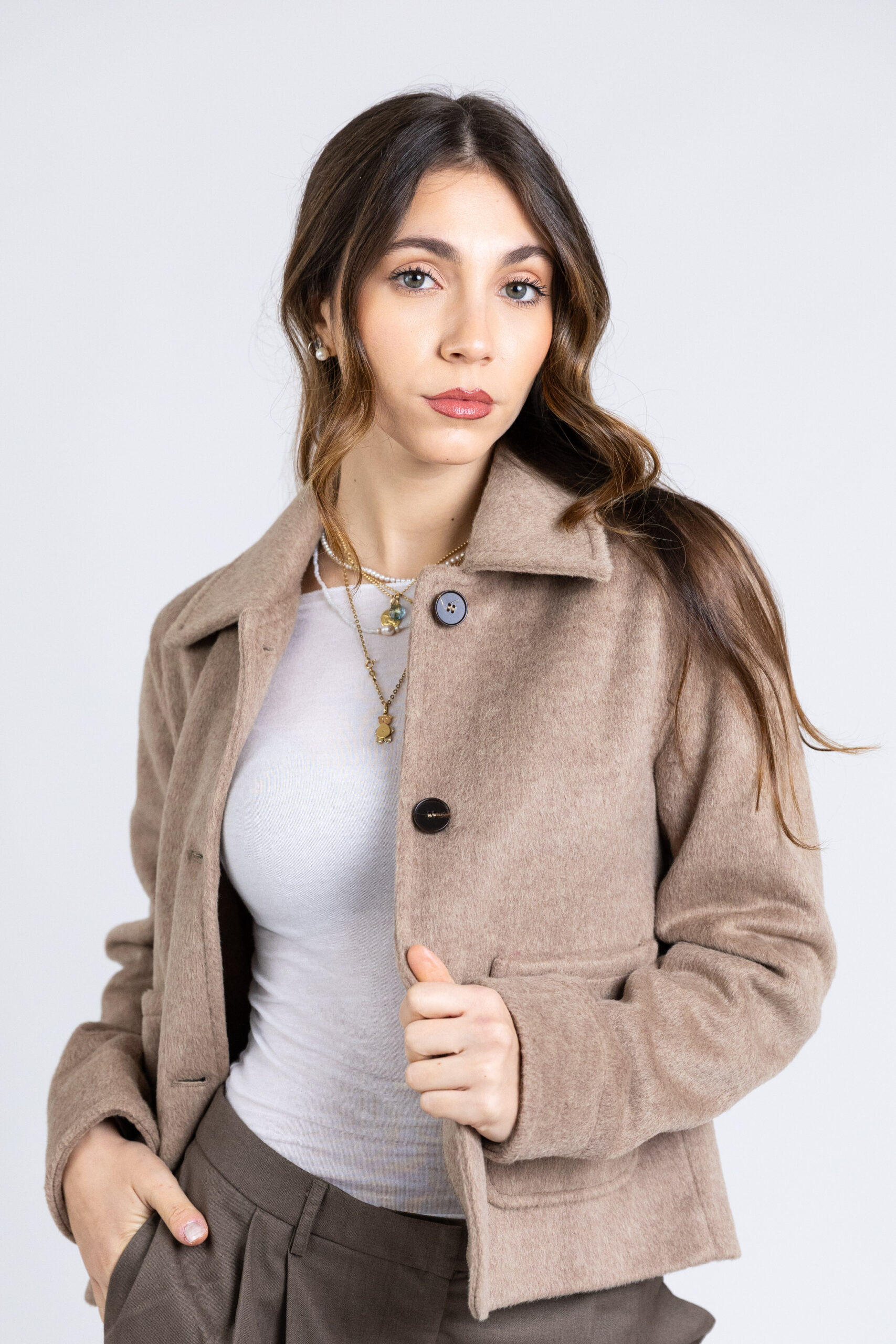 Vestibilità: cappotto corto in panno caldo misto lana con interno foderato.